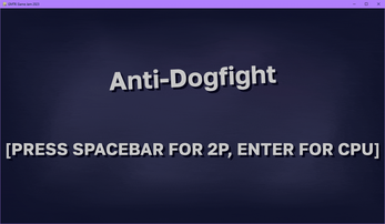 Anti-Dogfight is a two player dogfighting game set in intergalactic space... but you have to lose. Crash into your opponents bullets, and try to aggressively ram into as many comets as you can to lose all of your HP in this fast-paced two player (or against an "ai") game!